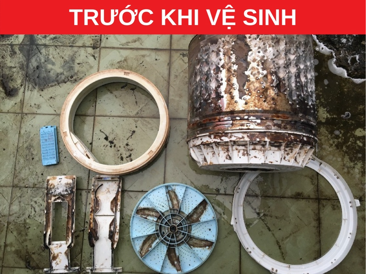 - Tháo rời máy giặt, vệ sinh sạch sẽ từng linh kiện bên trong