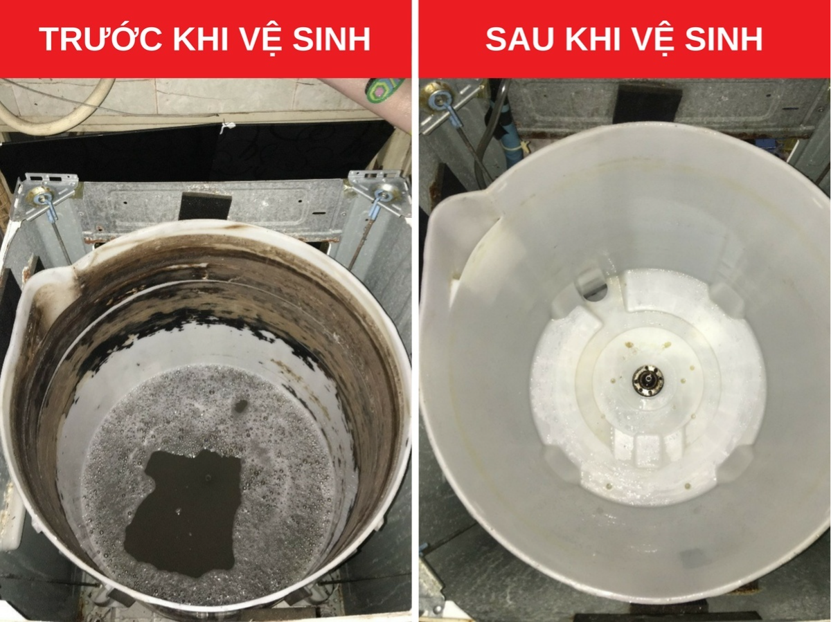 - Loại bỏ các sơ vải, chất cặn bẩn bám ở các hốc bên trong lồng giặt